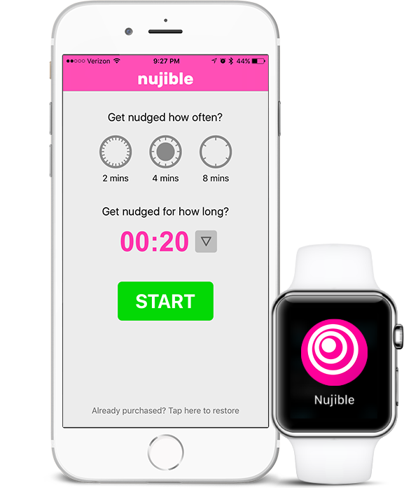 Set how often and how long you want to get nudged and go! You will receive a periodic nudge that is subtle and completely silent.
